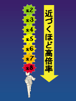 敵破壊時に得られるスコアをTBS倍率で乗算し、獲得スコアが2倍〜8倍に変化します。